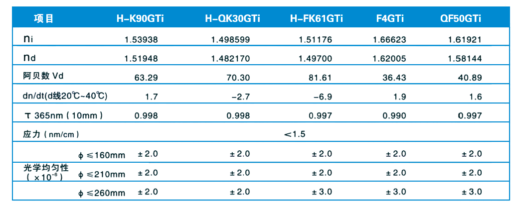 光学高透过率 i 线玻璃nioxe_admin2025-03-13T17:22:27+08:00项目描述经过严格的品质管控连续熔炼生产的 i 线系列光学玻璃产品,为光刻及特殊领域客户提供了优秀的产品。此系列产品在 365nm 具备优秀的抗辐照性能、高透过率、高均匀性等特点。典型应用如下:365nm光刻设备的光源及物镜系统。